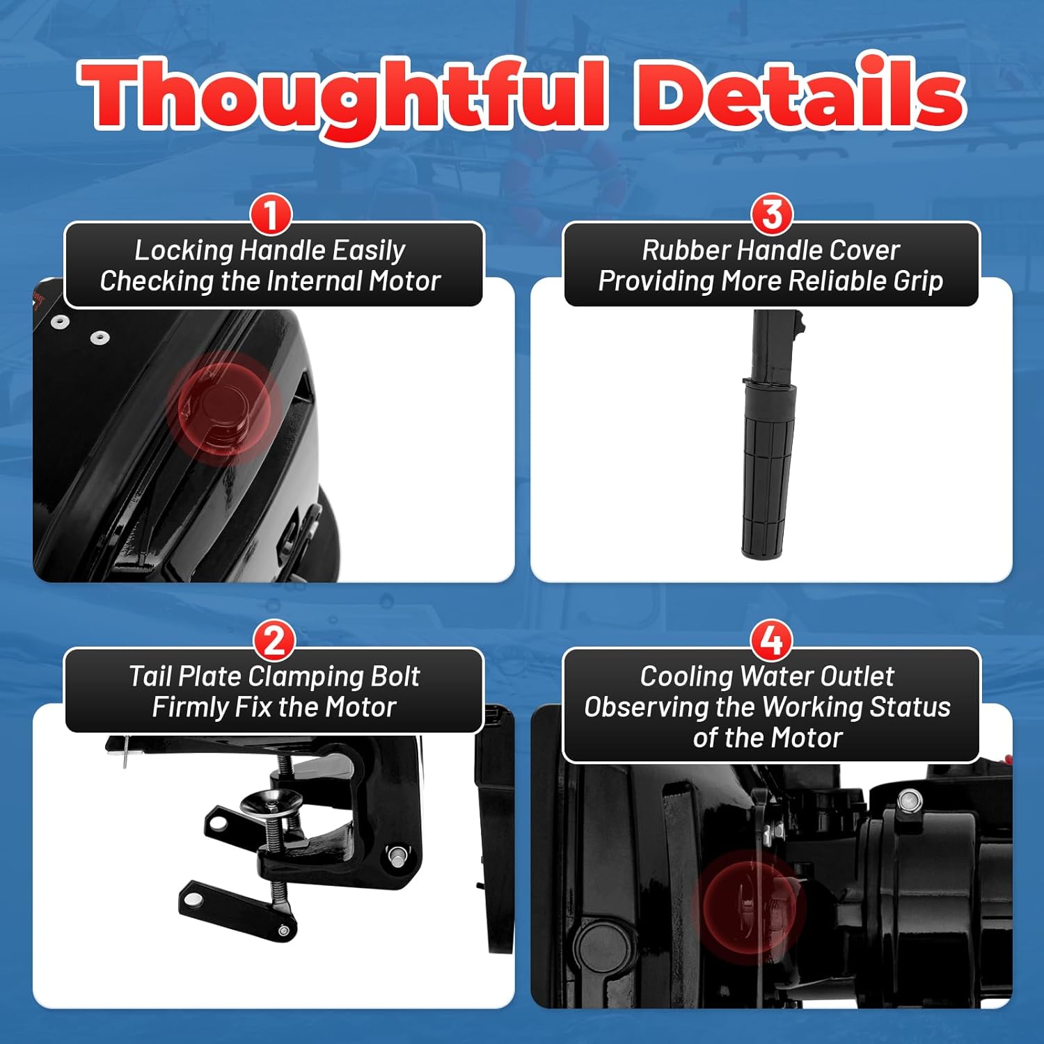 This powerful 2 stroke outboard motor is perfect for inflatable boats, fishing boats, and small yachts. With its 102CC gas powered engine and water cooling system, it provides reliable performance and efficiency. The CDI ignition system allows for quick and safe starts, while the 360 degree steering rotation makes it easy to maneuver. Whether you’re fishing or cruising, this outboard motor is a great choice. Its lightweight and compact design makes it easy to carry and store, and its environmentally friendly design meets CE certification standards.