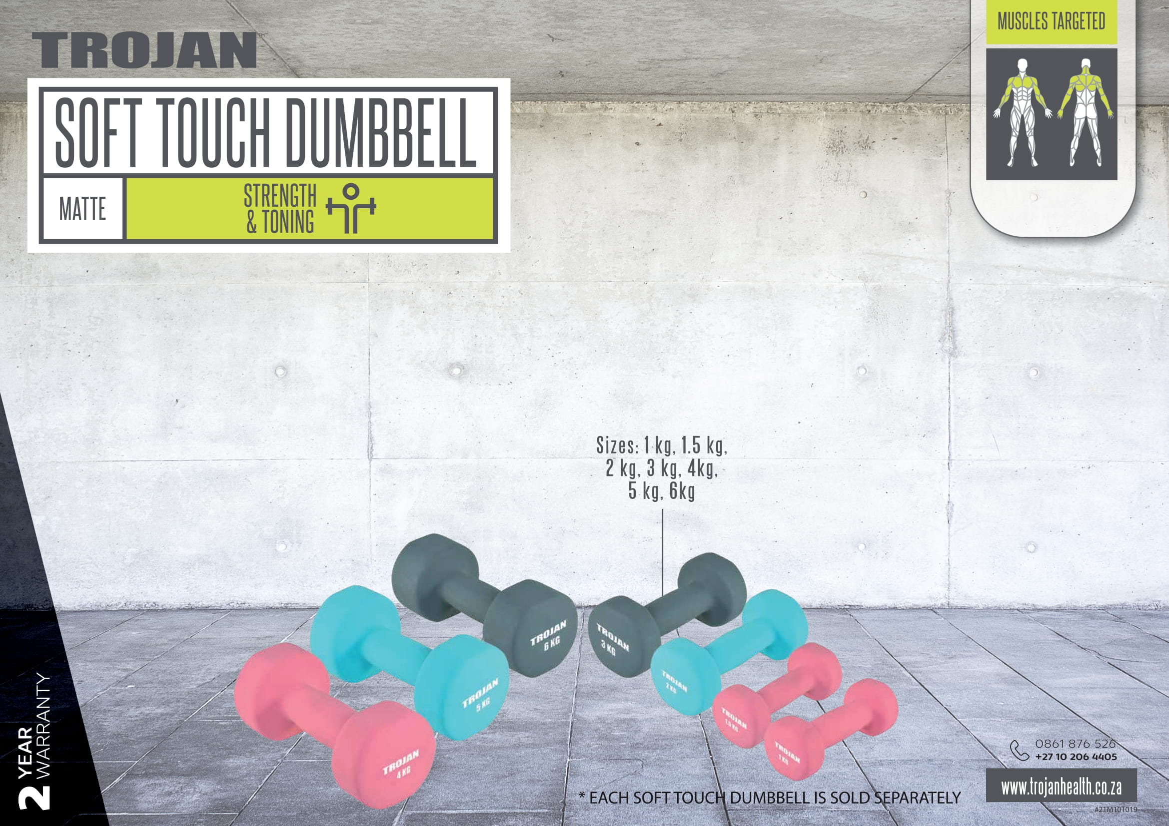 Get a grip on your fitness goals with the TROJAN Soft Touch Dumbbell, featuring an easy-grip coating for a secure hold. The printed weight number on each end cap allows for quick identification, while the hexagonal shape prevents rolling. This dumbbell is perfect for a variety of exercises, from bicep curls to shoulder presses. With its durable construction and comfortable design, you’ll be able to focus on your workout without distraction.