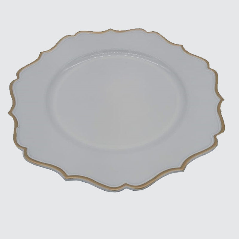 White & Gold Plastic Scalloped Underplate